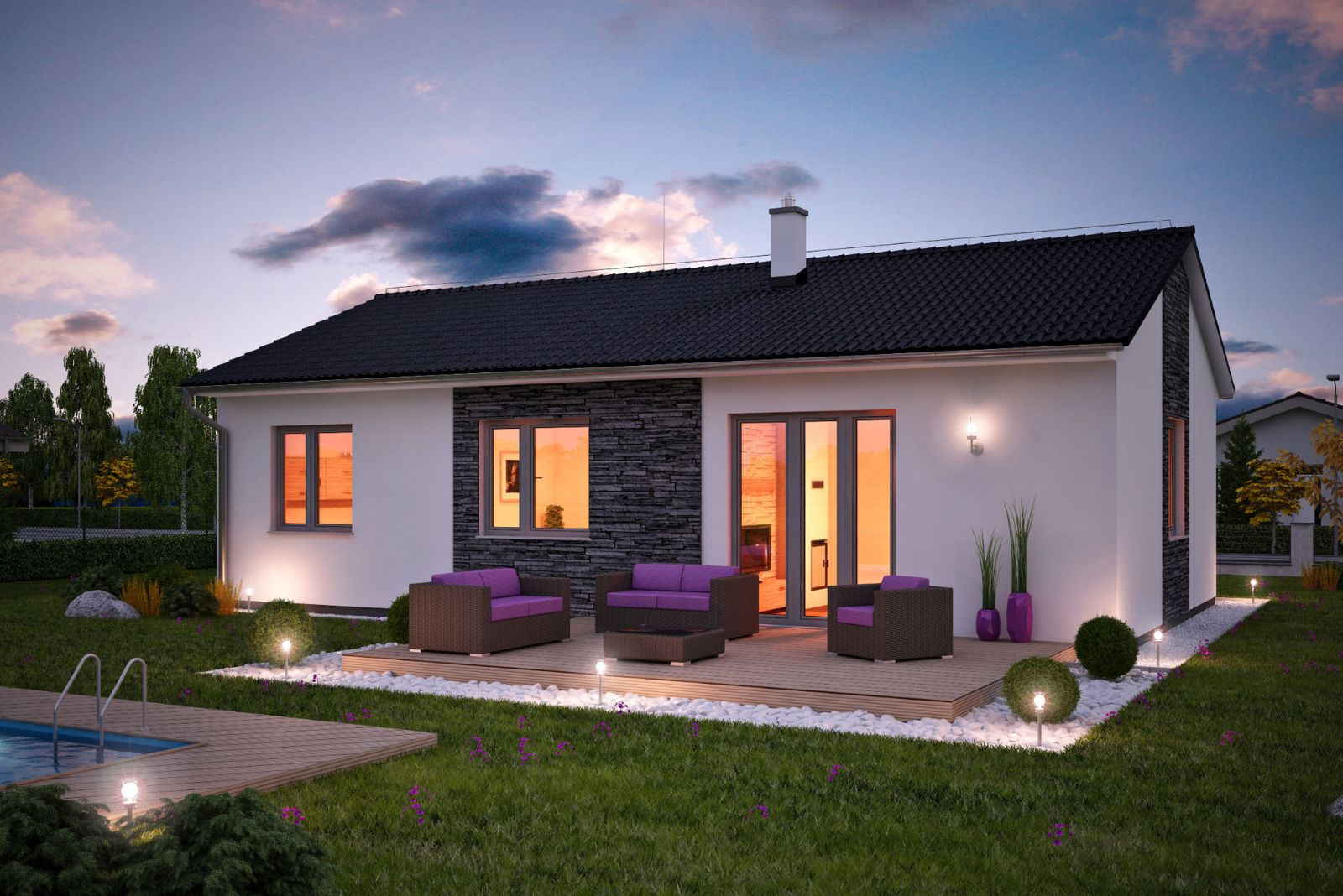 Bungalov HP90 si můžete prohlédnout také na následujícím odkazu, kde najdete videoprohlídku i 3D vizualizaci interiéru domu.