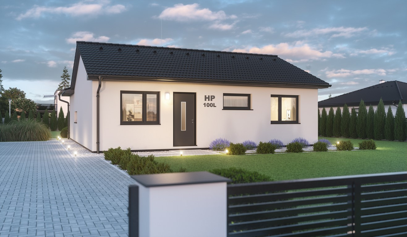 Dům je svým kompaktním tvarem vhodný i na menší pozemky.